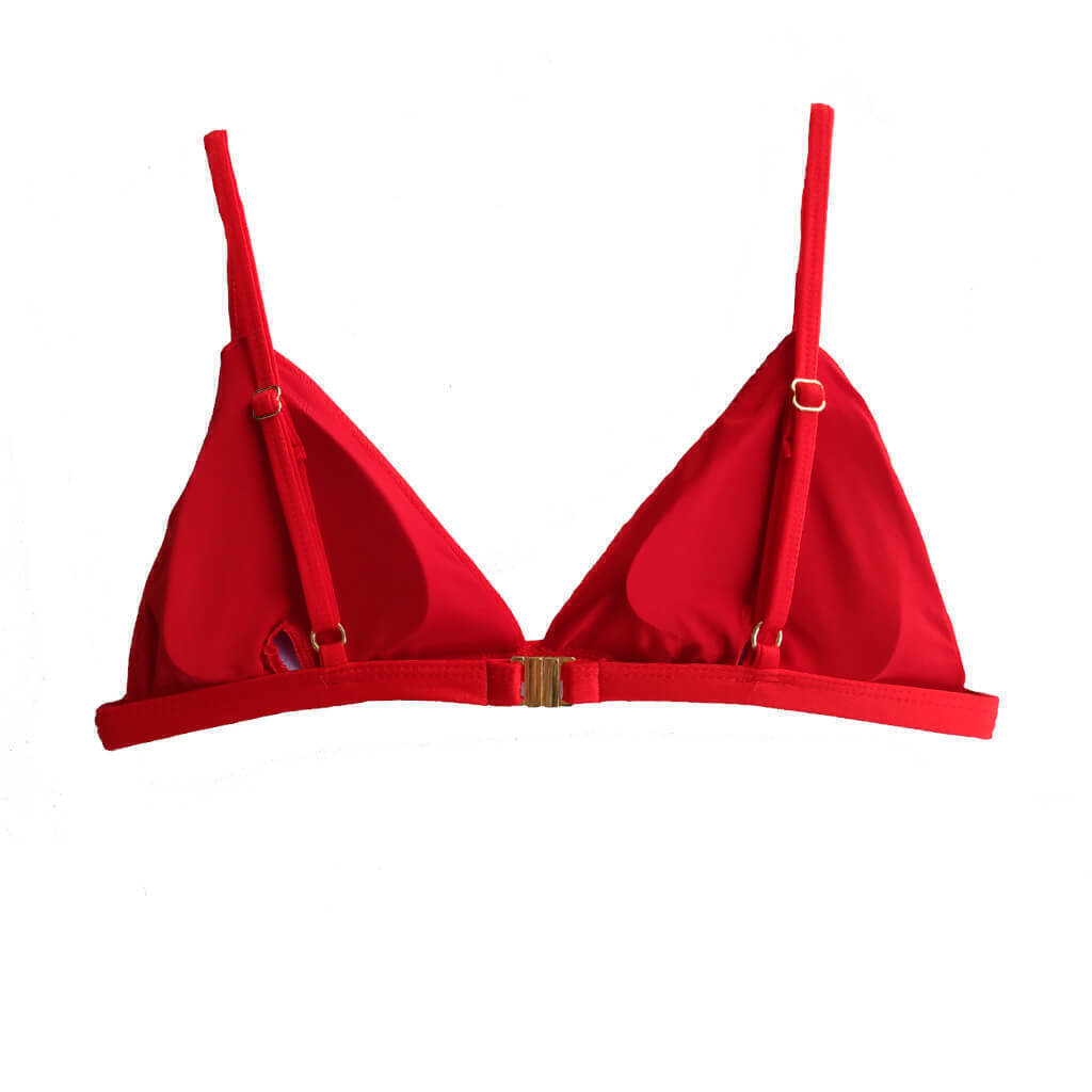 O nosso top triângulo é um modelo que, acima de tudo, proporciona conforto. Possui alças com reguladores e fecho de metal nas costas. Nossos metais são banhados especialmente para moda praia, garantindo que não oxidem nem descasquem.